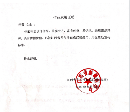 近日,由我校艺术与体育学院教师汪菁设计的作品《早安·晚安》被江西省发作性睡病联盟录用,用于活动宣传标志。江西发作性睡病及睡眠增多诊治联盟以南昌大学第二附属医院为牵头单位,包括省级、地市级的30家成员单位以及1家联络单位,是关注少数病的联盟组织。学校一直支持鼓励专业教师发挥自身专业优势,利用自身专业特长,提升社会服务能力,用信息转化为社会价值,沟通人与人之前的关系,产生巨大的正面影响力。本次设计作品的录用体现了我校艺术设计专业的:“用专业服务社会,用设计创造美好!”的发展理念。